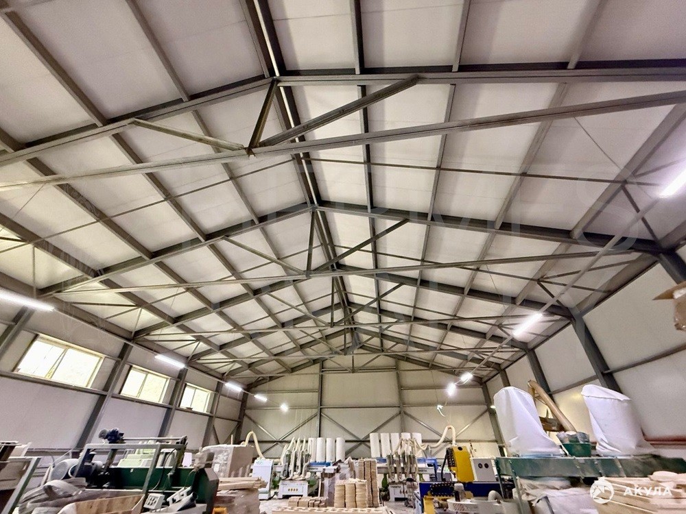 Два теплых производственных ангара: 1264 м2м и 593 м2. Высота потолков - 6 метров.