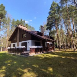 Дом расположен близко к Москва - реке Инфраструктура пансионата /Сосны/. Красивый участок со склоном, газон, лесные деревья. Дом расположен напротив парковой зоны с великолепными видовыми характеристиками. Описание лот 1252:Цоколь: сауна, душевая, комната отдыха, бассейн с...