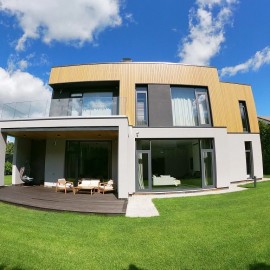 Лот 69106. НИИ Радио. Новый современный дом из газосиликатных блоков, 216 кв.м. в новом закрытом коттеджном поселке, с отделкой "под ключ" Внешняя отделка - крупноформатный керамогранит, ригельный камень, утепление толщиной 150 мм; У дома кровля - мембрана (можно сделать...