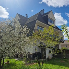 Продам светлый дом 354, 1 м2 на зеленом участке 13 сот.. В доме большая гостиная -столовая с выходом на террасу и участок, кухня, оборудованная всей необходимой техникой западных брендов, гостевая спальня, гардеробная комната, гостевой санузел, бойлерная., гараж на два...