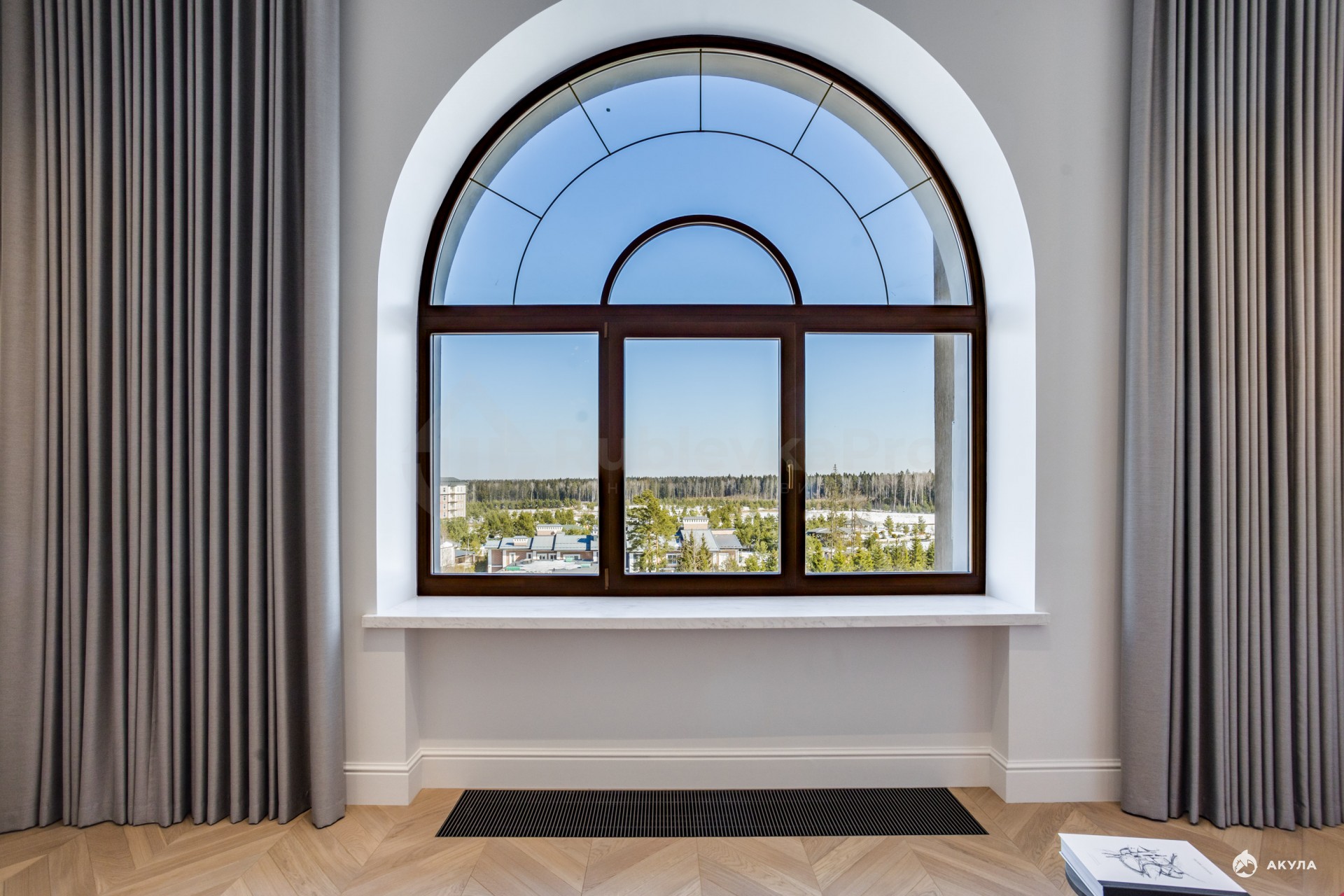 О квартире, которая находится выше суеты, но внутри леса. Шестой этаж. Закрытый поселок. За окнами — сосны и вода. Внутри — 4.10 метра высоты, которые меняют ощущение пространства.
