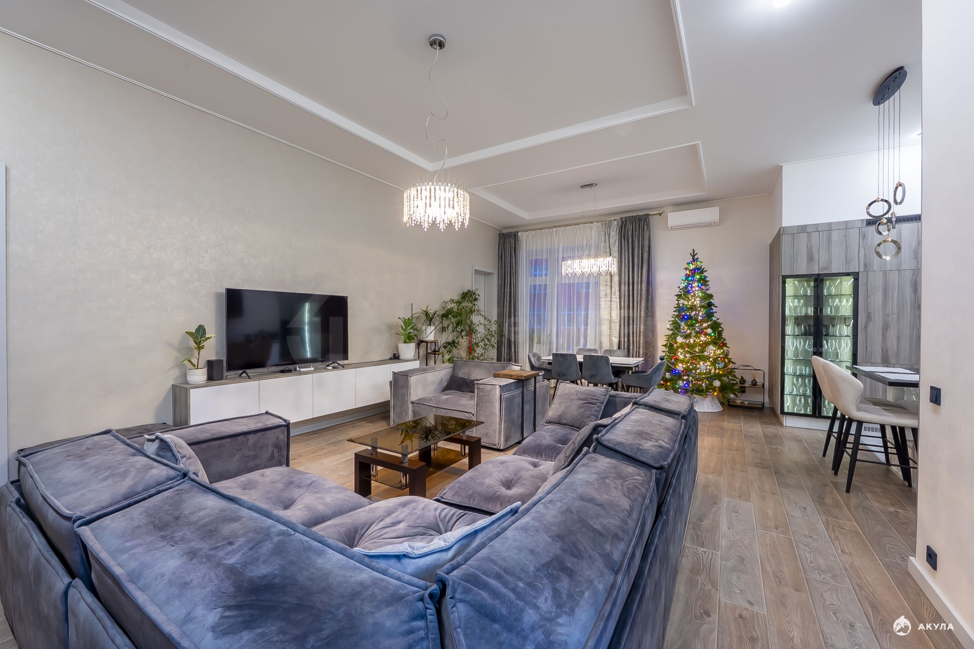 просторная гостиная‑кухня‑столовая — 56, 76 кв. м (идеальна для семейных ужинов и дружеских встреч);