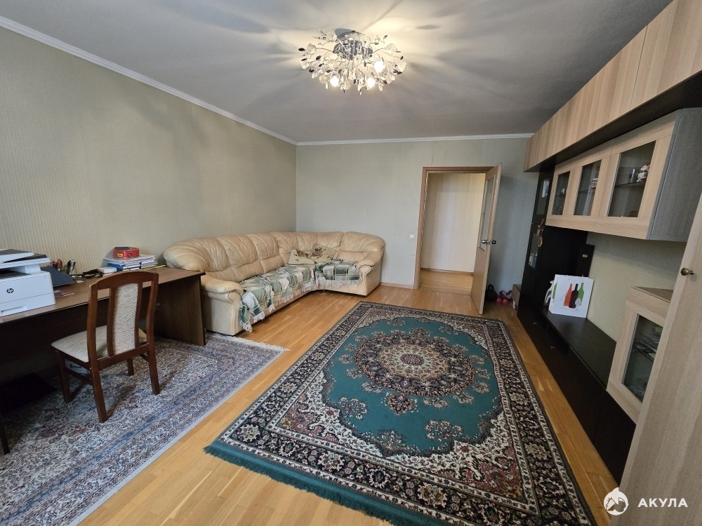 Квартира на 9 этаже, 17-ти этажного панельного дома, распашонка, хорошей планировки. Общая площадь квартиры: 82, 7 кв.м., жилая: 49 кв.м., кухня: 12, 7 кв.м., комнаты: 24, 3; 12, 4 и 12, 3 кв.м. - все изолированные, два сан.узла, застекленные лоджия с балконом. Квартира на две стороны света: восток и запад, с видом на "Беличий парк" и центральную улицу с озером. Состояние хорошее. Продаётся с мебелью.