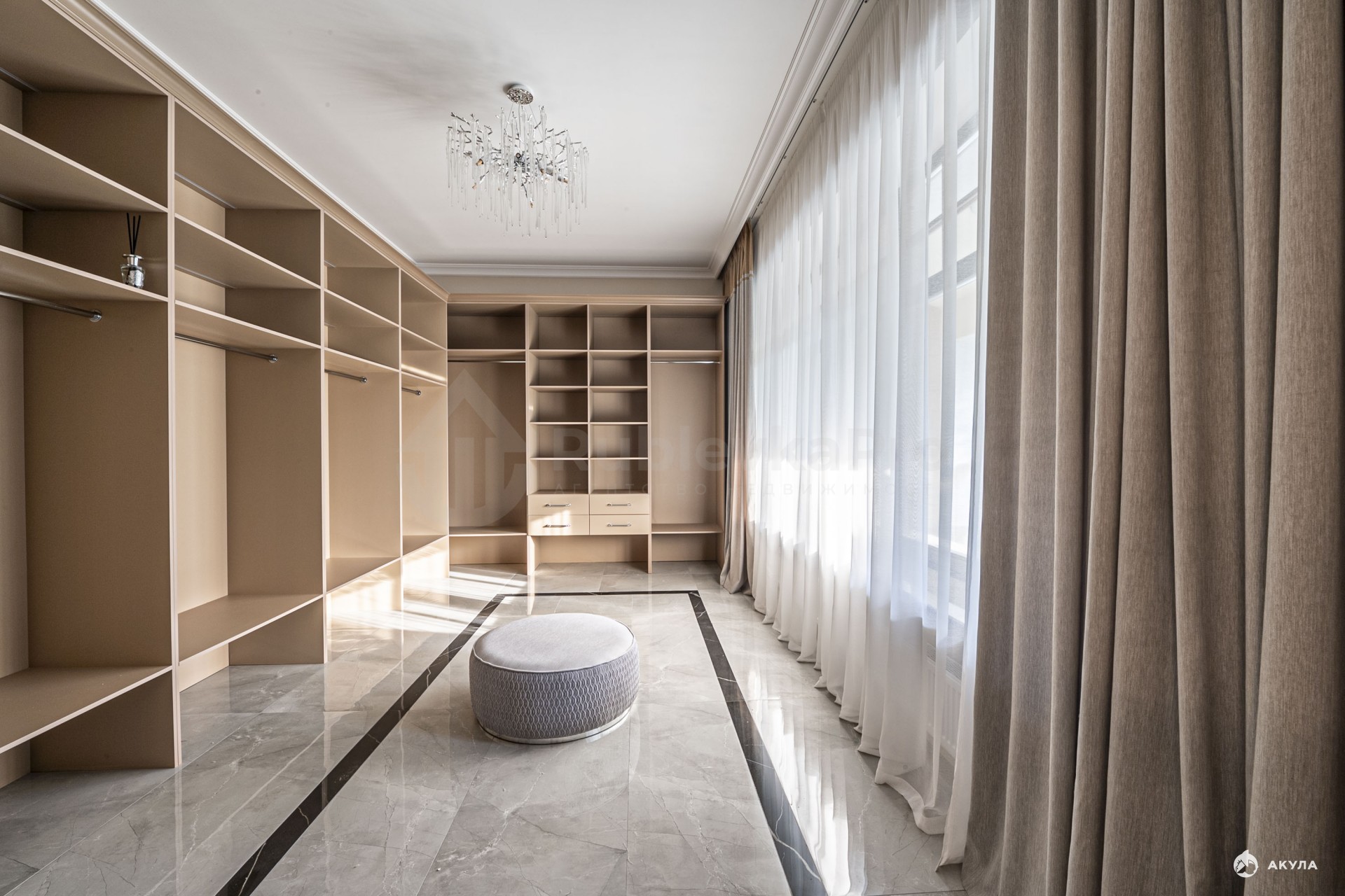 Далее попадаешь в мастер-блок, в котором огромная спальня, гардеробная комната, санузел и собственный кабинет с выходом на балкон. В кабинете ничего н будет отвлекать от работы, только чистый свежий воздух и щебетанье птиц.