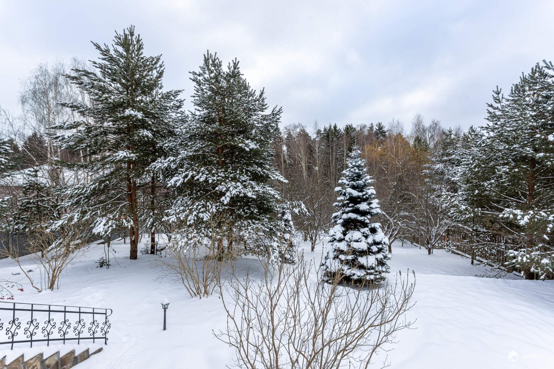Здесь созданы все условия, чтобы сбежать от городской суеты и насладиться единением с природой. Размер лесного участка — 66х30 метров. На просторной территории высажено множество деревьев: вечнозеленые высокие сосны, пушистые ели, дубы и клены, а также несколько яблонь. В солнечную погоду они образуют натуральный тент и защищают от жары, но в то же время не препятствуют проходу солнечных лучей и позволяют отлично освещать пространство.