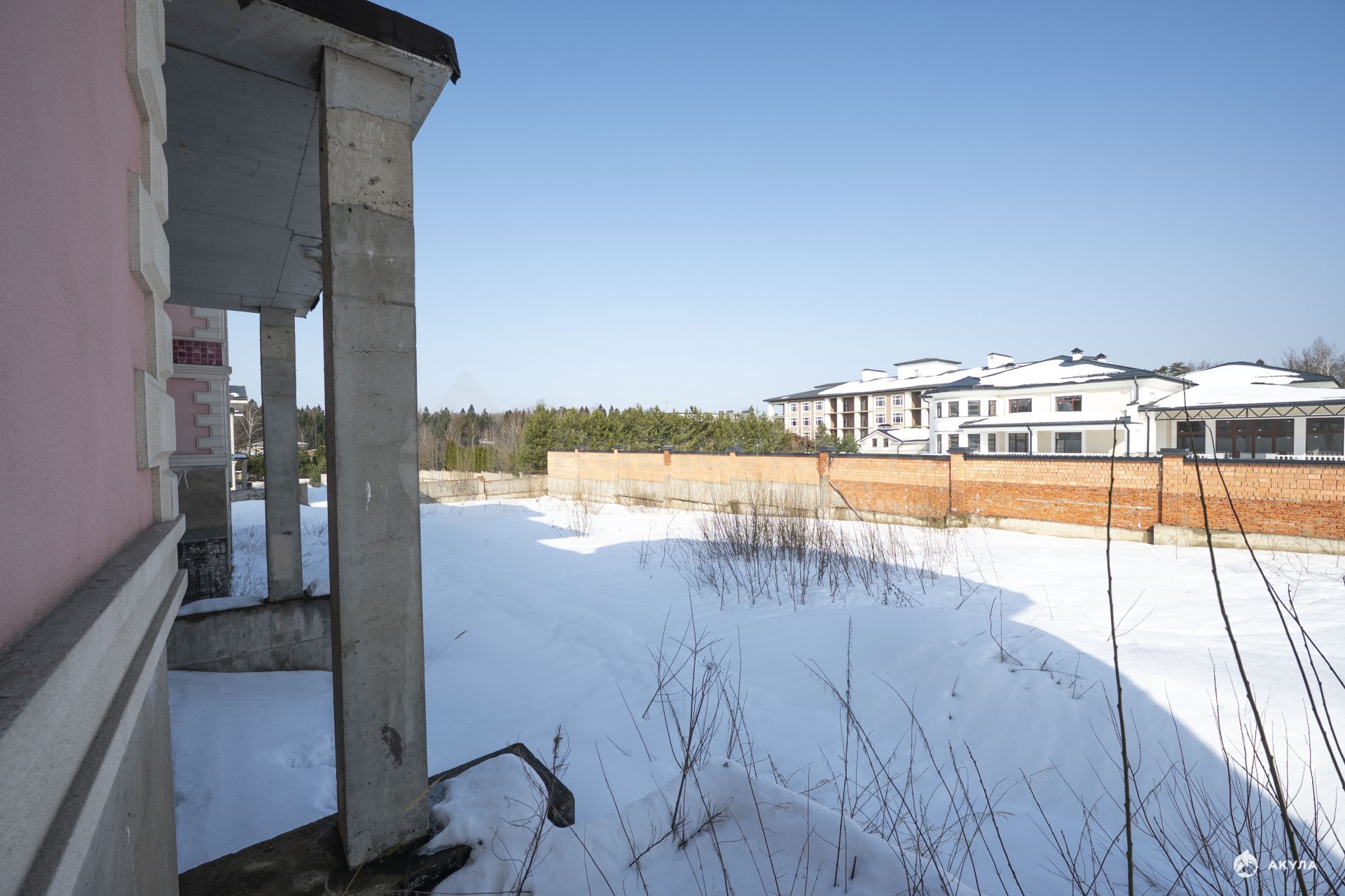 На участке есть монолитно-кирпичный дом 1814 м2 в трех уровнях под демонтаж или, при желании, под отделку.