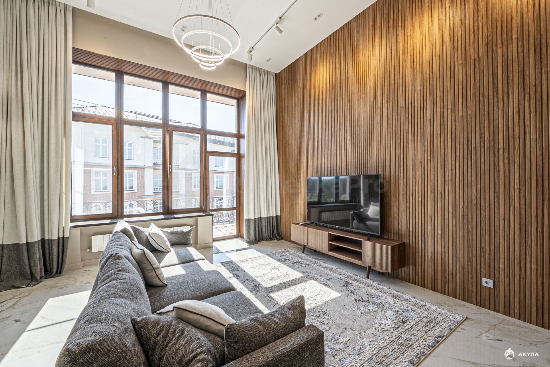 Пространство для жизни: Просторные светлые зоны с высотой потолков более 4, 6 метров, авторское светодиодное освещение. Идеальная планировка для большой семьи: гостевая зона с выходом на просторную лоджию, изолированная мастер-спальня с видовыми окнами и гардеробной, две дополнительные спальни с гардеробными комнатами на втором уровне.